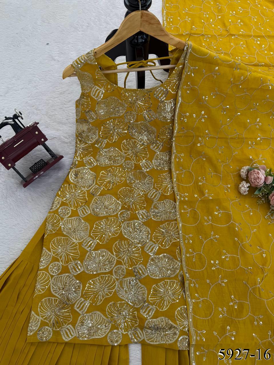 Designer Party Wear Thread With Sequence Sharara Set