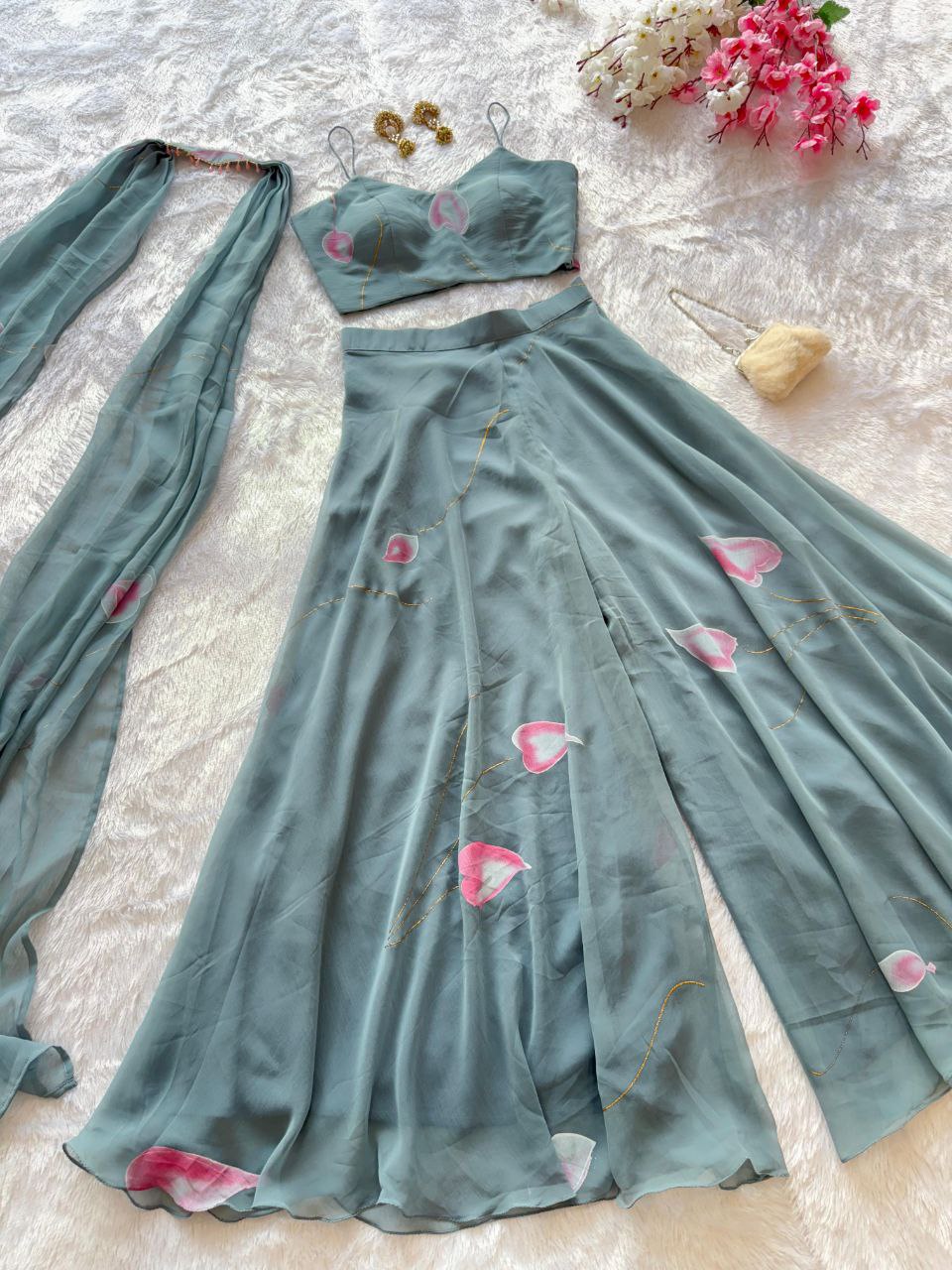 pure Georgette Printed Work Blouse Plazzo