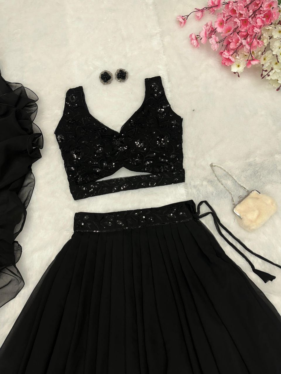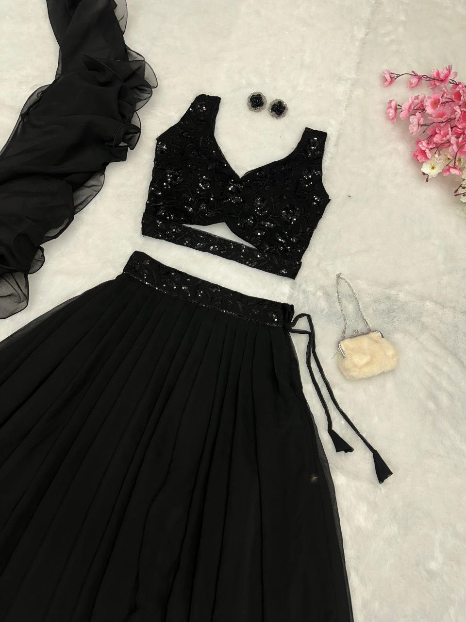 Pure Georgette With Plain Work And Embroidery Sequence Work Lehenga